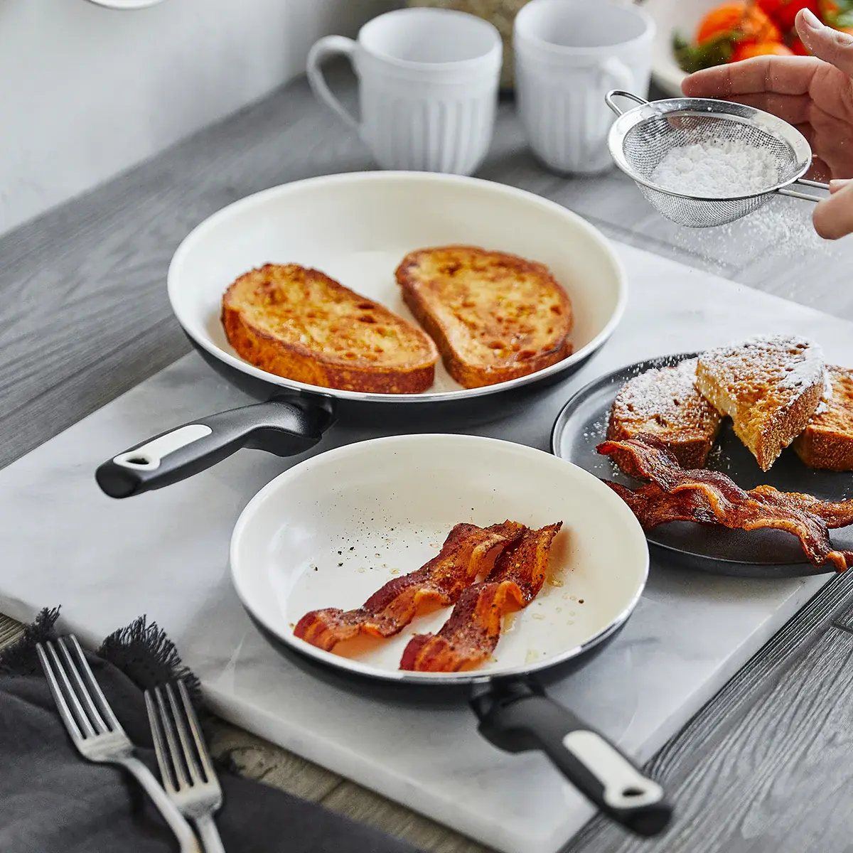 Our durable Thermolon™ healthy ceramic nonstick heats evenly and cleans up easily every time, plus it’s free of PFAS.