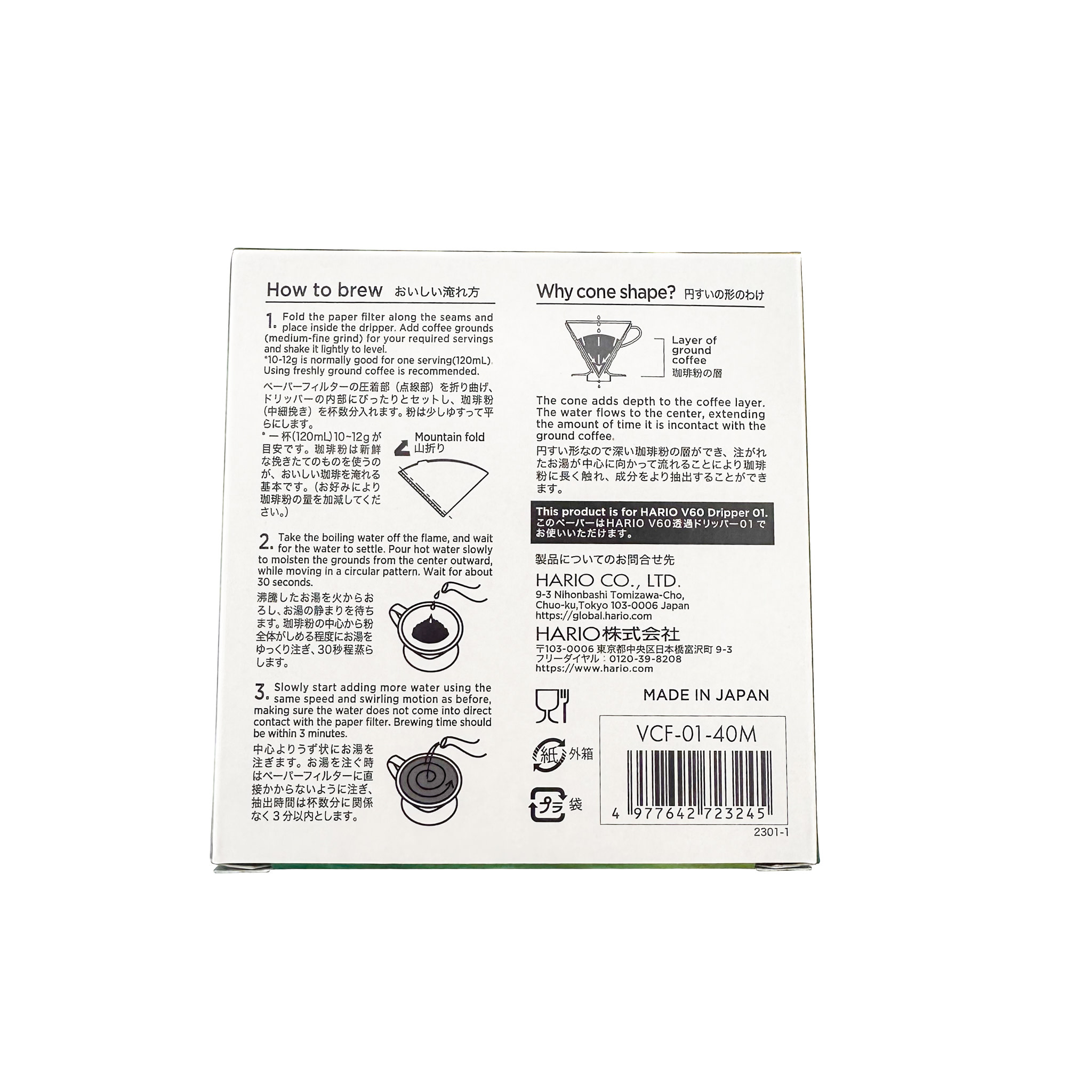 A pack of 40 Hario filters, designed for the cone-shaped 01 coffee drippers. The Hario Ceramic Coffee Dripper brews a great single cup, but you need to make certain that you are using the right filter to achieve the desired results. The bottom of the Hario #1 and #2 filters comes to a point, which fits with the overall design of the brewer and extracts beautifully.